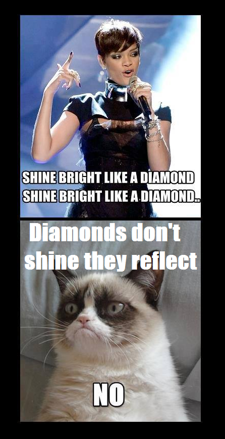 Grumpy Cat: NO Diamonds don't shine they reflect.