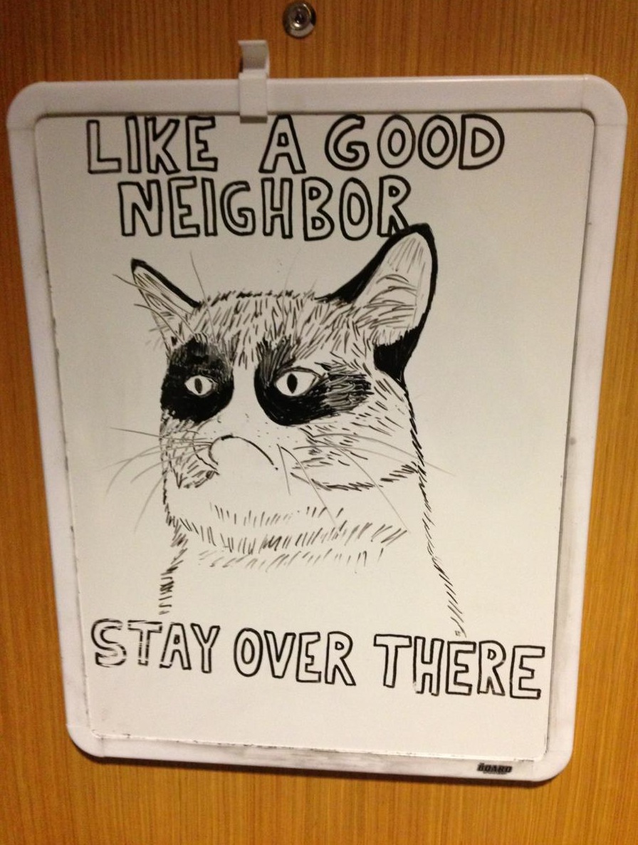 Grumpy Cat Whiteboard Door Sign - Like a Good Neighbor Stay Over There