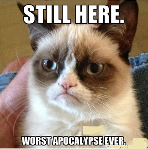 Grumpy seems to never be satisfied, or is he ? lol That face tells the tale. He was not thrilled with the alleged apocalypse that was predicted. I am not sure that he really wanted it to all end or if he is just grumpy because he was looking forward to a little excitement.