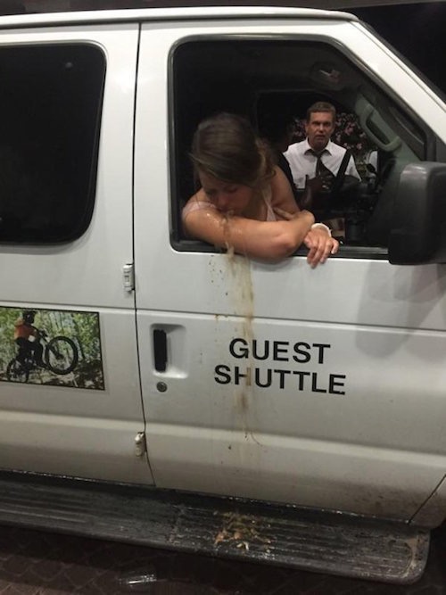 Either she wasn't too crazy about his driving or she's being carted around from a big party. Either way it's time to take that van to the car wash.