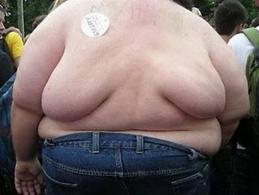 This guy has an incredible amount of fat on his back. Wow. I'm sure the ladies and guys are all jealous! What a show off...