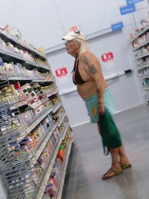 Guys really love bikini season at Walmart. In fact they love it so much sometimes they bring their own bikini and wear it to the store. Throw in some manly tattoos to complete the picture.