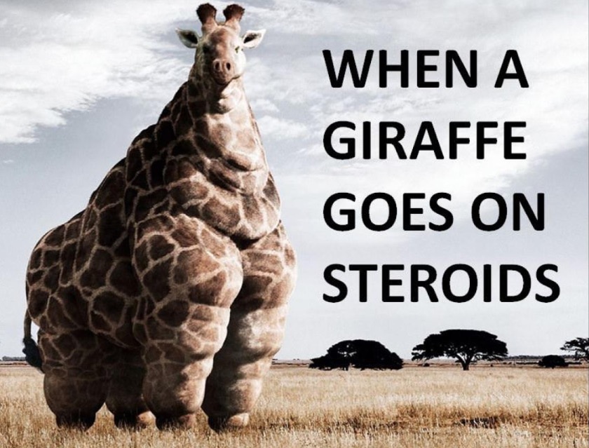 When a giraffe goes on steroids...there goes the neck. He's probably on an advanced stack.