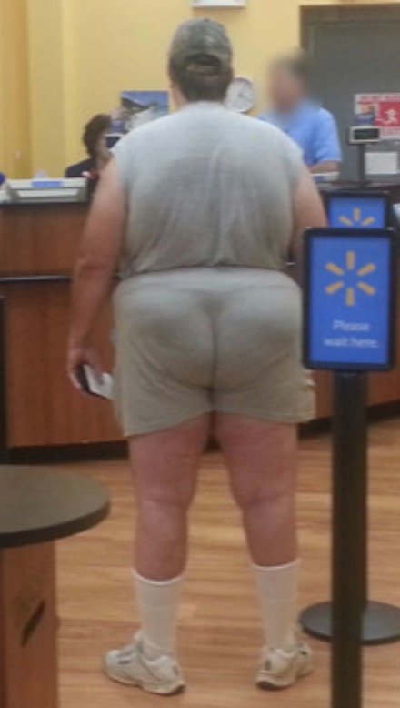 God this guy needs to go home right now and have his mom dress him again. There seems to be no end to the limits these walmart shoppers go to.