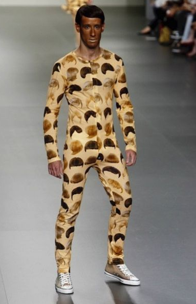 This guy dressed up as a hairy man WTF where do they come up with these Ideas fashion is to confusing for me.
