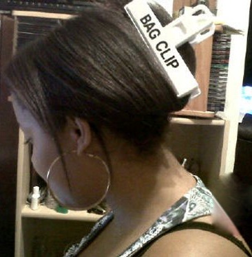 This girl is really on the cutting edge of fashion. I guess she is trying to keep her hair fresh? Maybe she should consider going shorter