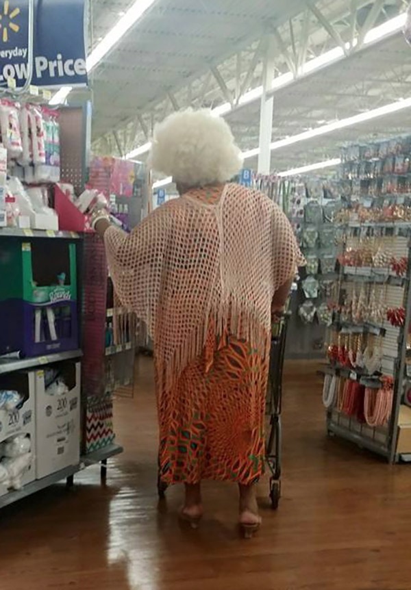 Give me head with hair long beautiful hair! This poncho really goes well with that giant afro. I think if I saw this person at the store I'd ask for an autograph, has to be somebody famous.