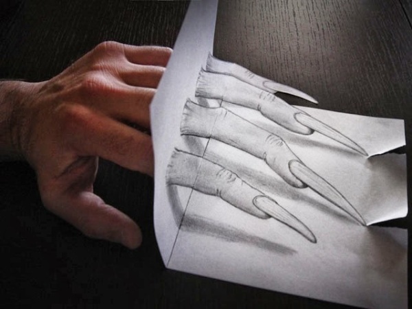 Check out this amazingly simple piece of art. The 3D fingers are a very interesting effect. The long fingernails add a creepy aspect to it also.