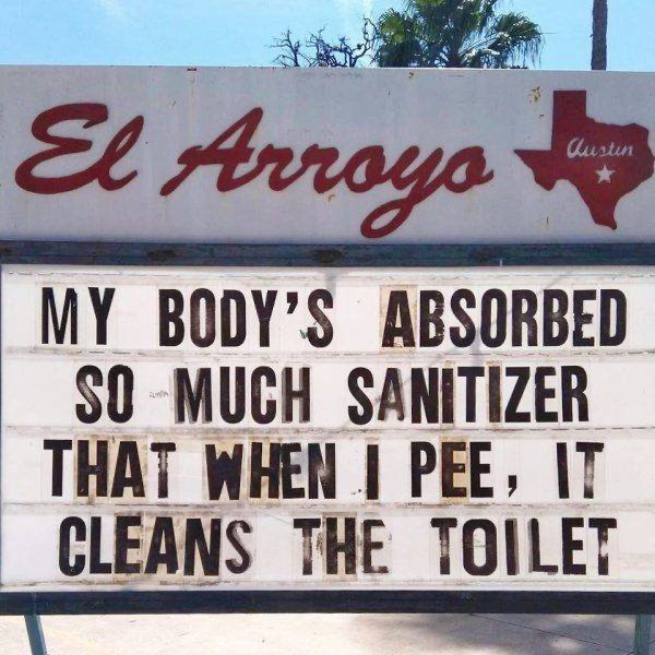 My body's absorbed so much sanitizer it cleans the toilet when I go.