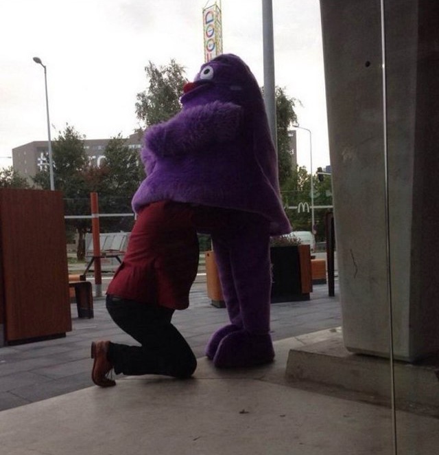 McDonald's is not holding back with their customer service. Grimace looks happy.