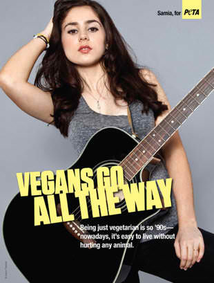 This time, there are no naked girls or controversial pictures of women holding bloody animals with no fur. Nope, this is about a 16 year old singer with the caption "Vegans go all the way" below. The sexual implication isn't lost on us. While we're fine with this with other women, underage teens really shouldn't be used for this kind of caption. Or should they?