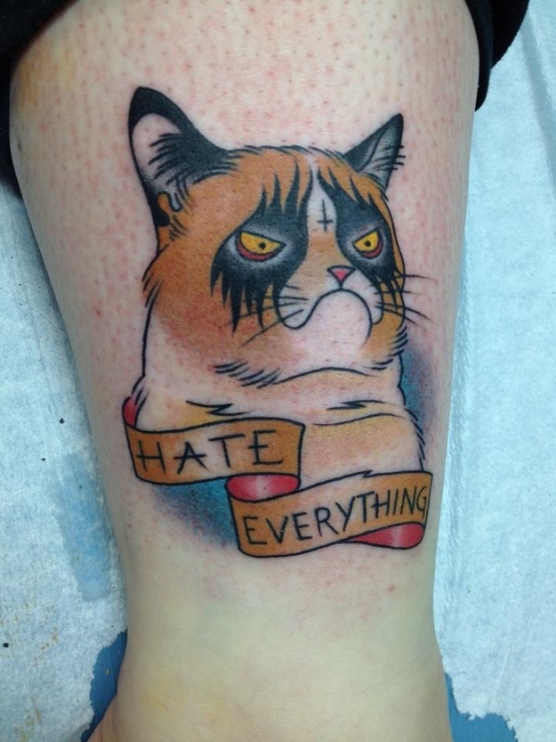 Tard the Grumpy Cat tattoo is now forever painted on my body. I love this little grump cat because he hates everything like me.