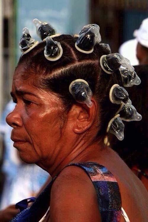 This woman really likes condoms doesn't she? I've never seen so many at one time. Either she has a big date tonight or she has a new way of fixing hair.