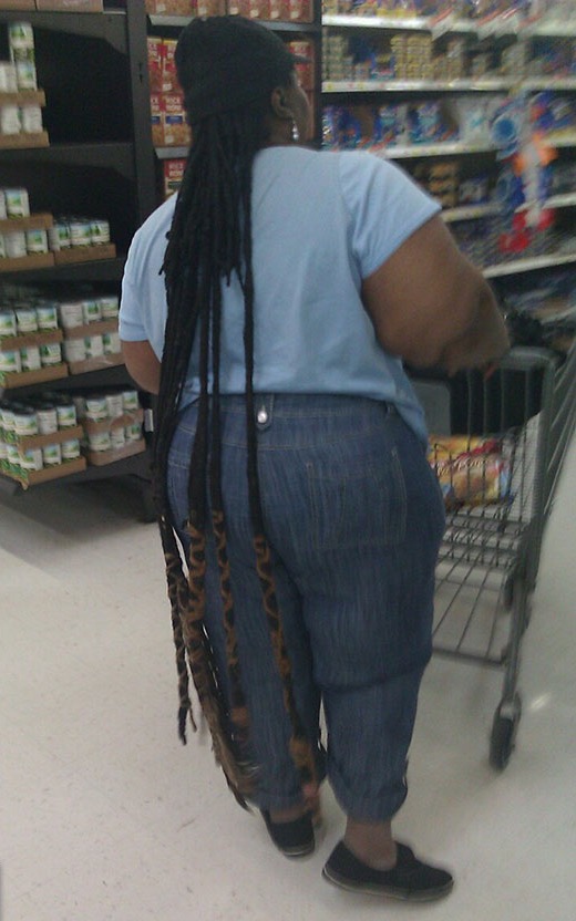 Those are some heavy hair extensions. Hopefully her head will hold.