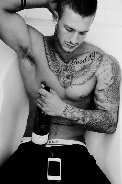 This guy really knows how to woo a woman. A bottle of wine, lovely abs, muscular arms and a gorgeous face. Who could ask for more? :-)