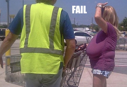 Hey Cart Boy Look Up When I'm Talking To You - Bodily Proportions Fail at Walmart