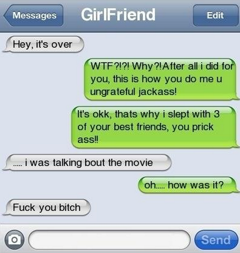 it's ok thats why I slept with 3 of your best friends you prick a**!!