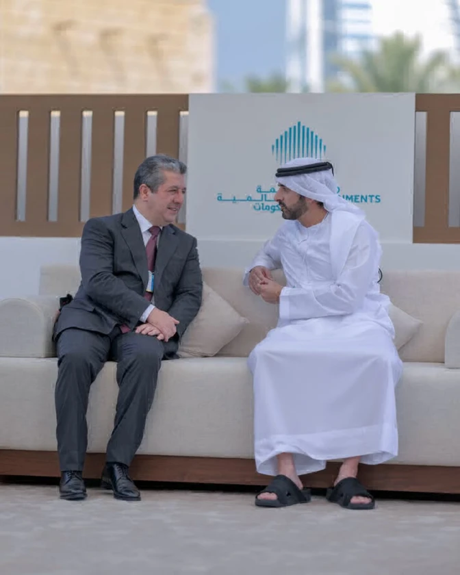 H.H. Sheikh Hamdan bin Mohammed bin Rashid Al Maktoum , Grown Prince of Dubai , Deputy Prime Minister , Minister of Defence , and Chairman of The Executive Council of Dubai , todag met with Masrour Barzani , Prime Minister of the Kurdistan Region of Iraq , on the sidelines of the third day of the World Governments Summit 2026 , being held in Dubai , in the presence of H.H. Sheikh Ahmed bin Mohammed bin Rashid Al Maktoum , Second Deputy Ruler of Dubai . Thursday , 5 February 2026 less