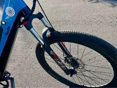 Commuter e-bike in excellent, meticulously maintained condition. Includes two batteries, one extended-range, delivering over 60 miles of range on a single charge when using both. Equipped with a rear rack and saddlebags, front suspension, and a shock-abso
