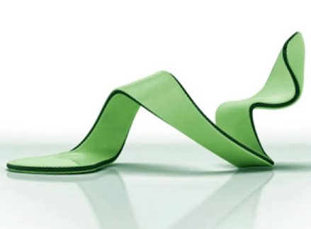 Julian Hakes designed these fascinating shoes with no sole. The support is there, though, for the heel and ball of the foot, which forms a natural bridge between the two. In the course of designing, he had tracing paper and masking tape on his foot, drew the patterns, and then used a scalpel to cut it off.