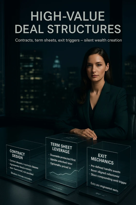 High-Value Deal Structures. Wealth is not created loudly. It is created in contracts. Term sheets decide control. Exit triggers decide outcomes. [ Quiet Execution Bio ] https://linkbio.co/kxbtinfinityWealth