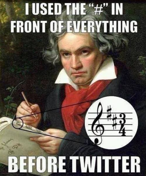 Beethoven was already using the hashtag even before the advent of social media. He's such a hipster. He was hashtagging before it was even cool.
