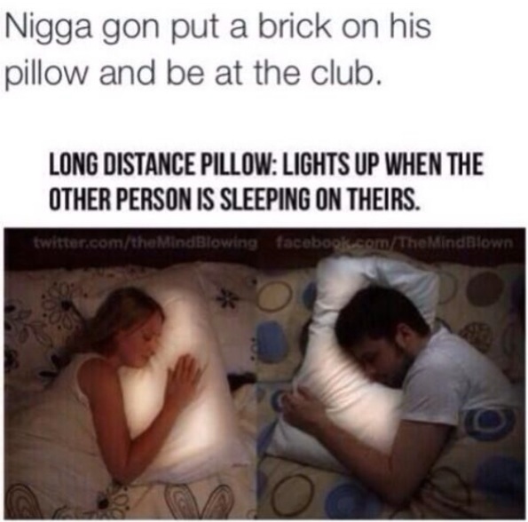 Well this guy certainly found a way to outsmart the light up pillow. Just throw a brick on the pillow and get on over to the club. Ha!