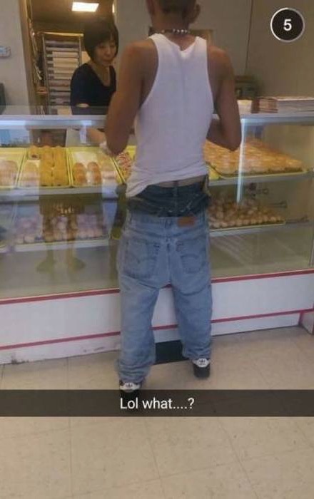I guess he did this on purpose. Maybe he needs to try wearing pants like everybody else and blend in a little. I think he's making himself too noticeable.