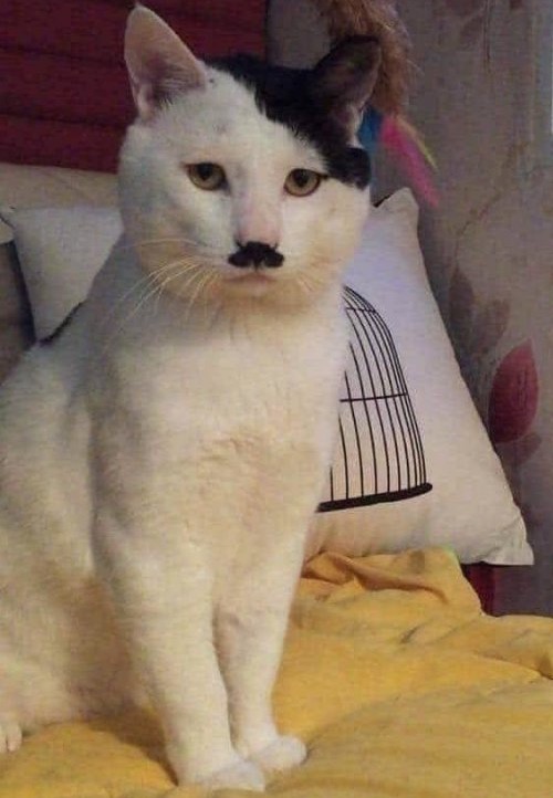 It's Hitler cat. He has the mustache and the haircut. Who knew Hitler could be so cute.