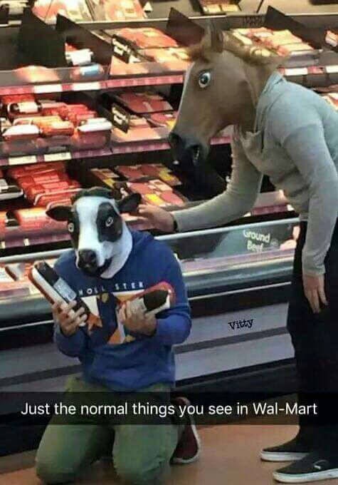 I guess this horse is consoling the cow on the loss of family. That was probably his little brother or sister. How sad! I'll take a veggie burger :-)