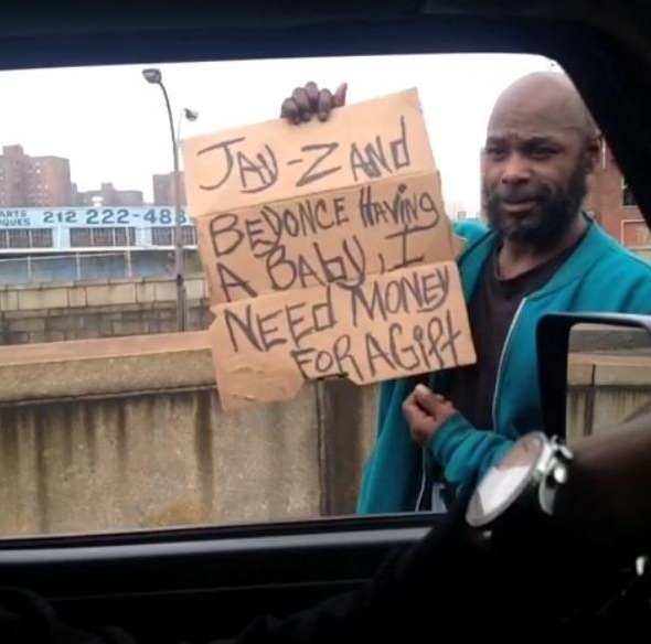 Homeless Man Needs Money for Beyonce and Jay-Z Baby Gift