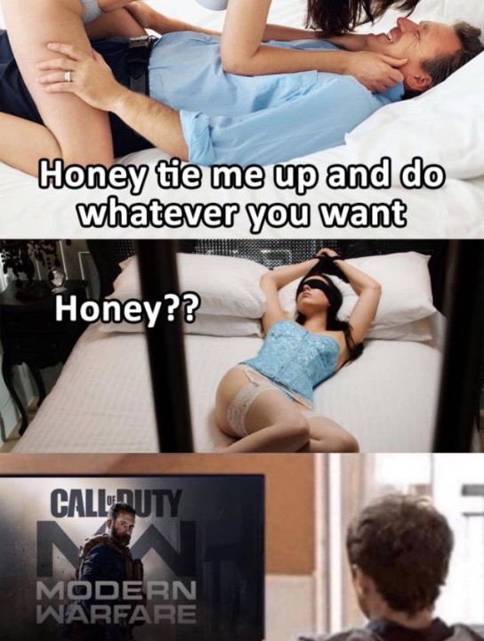 Honey tie me up and do whatever you want.....Honey? Call of Duty strikes again!
