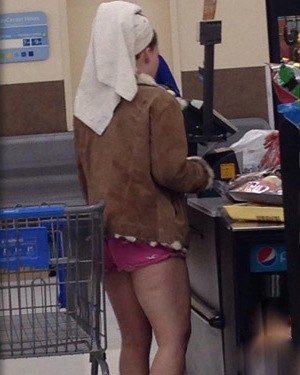 What the heck is going on with the world? At least dry off first before going to walmart. Don't wear a towel around your head at the store!