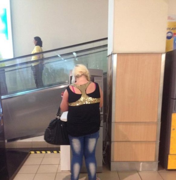 Hot Girl in a Gold Sparkly Undies Top - Fashion Fail