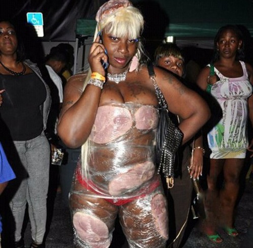 This woman looks very tasty! I think I'm ready to make myself a nice sandwich. I wonder where she stored the mustard? Time to unwrap her and find out!