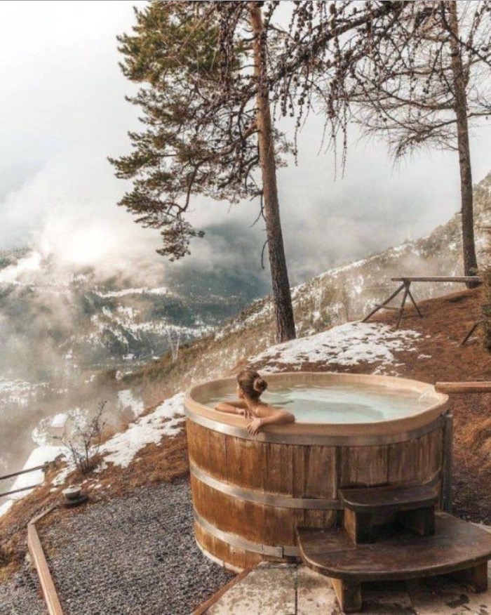 Now that's the way to be in a hot tub. Snow and mountains everywhere and you are toasty in the water.