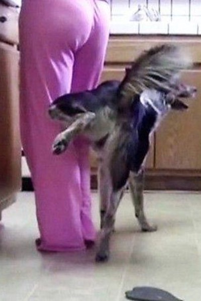 This dog looks like he missed potty training school. I guess he's going to have to take the courses all over again. Definitely not the right spot to pee.