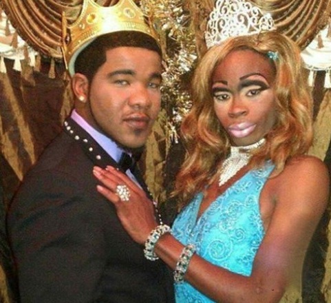 This girl really needs to go to beauty school and retake a course. Epic makeup fail here. Couldn't the guy say something to her?