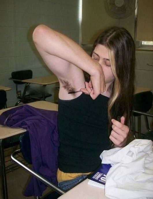 This girl is nuts. Why would you put mascara on your armpits? Are you trying to show off the hair you have there? Trust me no mascara is required.