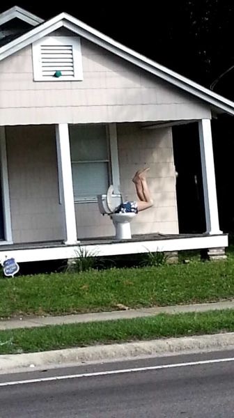 How To Beautify Your Front Porch: 1) Install a Toilet 2) Dive Into It and get Stuck