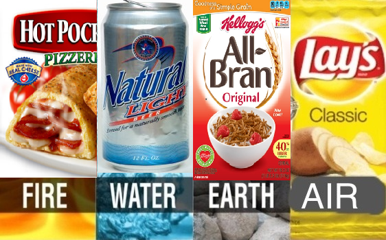 Okay so as we can see these food products provide the four most important elements that make earth. So basically the funda here is - I have a heart and if I combine all these with it I can become Captain Planet. I hope you remember the song -