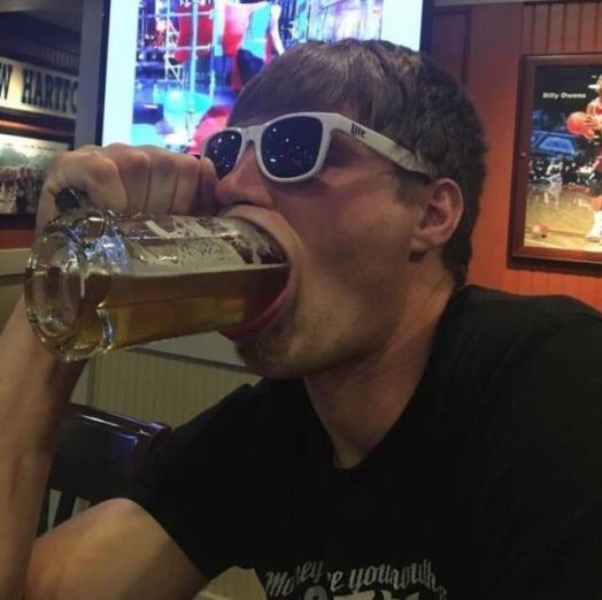 Here's Bob imbibing beer. Notice that he never misses a single drop. Sometimes he swallows the mug too.