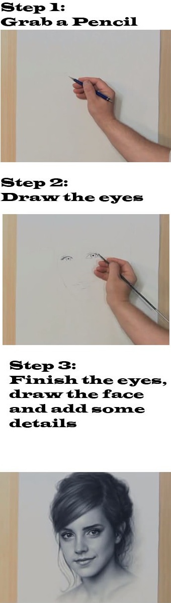 You can easily draw emma watson by following this simple how to guide. First draw eyes than add in face features. Very simple.