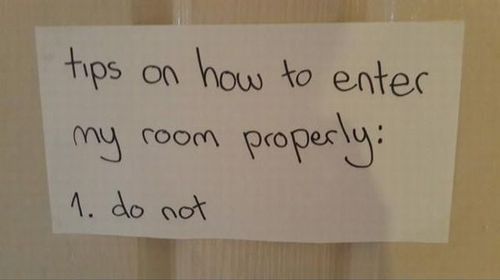 Do not. Just don't. My room is my sanctuary. This is a sign that is most probably used by teenagers who don't like parents snooping in their rooms.