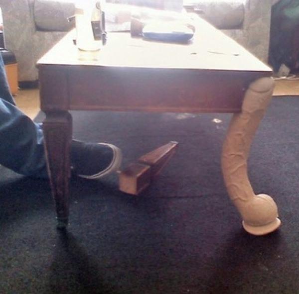 This is how you fix a coffee table. You have to make sure you get a very large third leg to hold up all the weight!