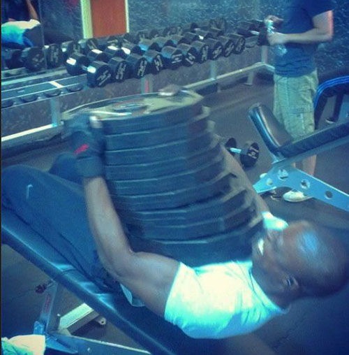 Ok the plates on this guy's abs look like they would normally crush the average person. Maybe he's trying to flatten his abs?