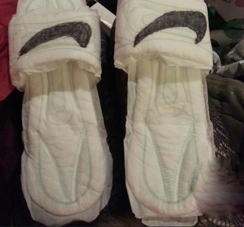Looking for a cheap pair of slappers? Here you go. These sleepers can be made with common female hygiene supplies. They also help keep your feet dry!