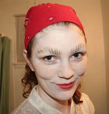She kind of looks like bride of frankenstein with those eyebrows. I only hope she has a pair of tweezers because they need some serious plucking