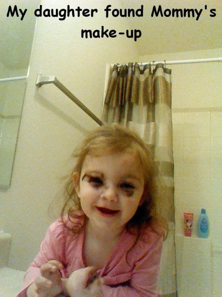 This little girl really shouldn't play around with mommy's makeup. Pretty soon she'll be wanting to date boys and leave home.