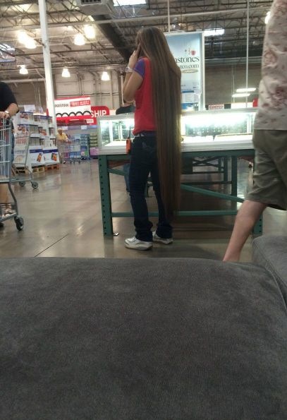 This walmart employee really knows how to grow hair. Good god. It's almost touching the floor. That's a lot of hair yo! Time for a crew cut